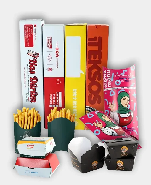 - Hazır Yemek Kutuları; Dürüm kutusu, Hamburger Kutusu, Menü kutuları, Patates Kutuları ve Sızdırmaz kutular vb. istediğiniz ebatta ve ölçüde ürünü üretebiliriz.